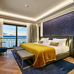 At Ikador Luxury Boutique Hotel & Spa, all premium rooms offer an unparalleled view of the Adriatic Sea, appreciated from their private loggias ensuring secrecy and tranquility. The interiors radiate sophistication, adorned with golden inlays, breccia medicea marble, and custom-made furniture, showcasing the formidable talent of Croatian design firm Atellior.
